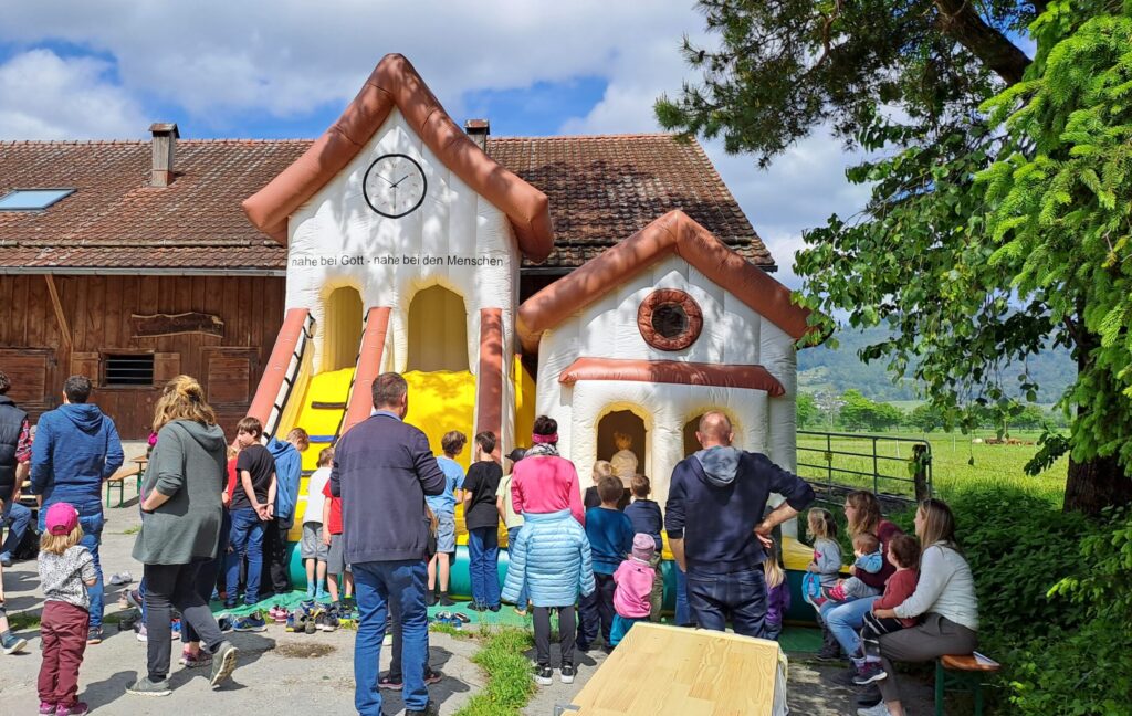 Bei Regen findet der Gottesdienst in der katholischen Kirche statt, und für Kinder und Familien gibt es ein Programm im evangelischen Kirchgemeindehaus.
